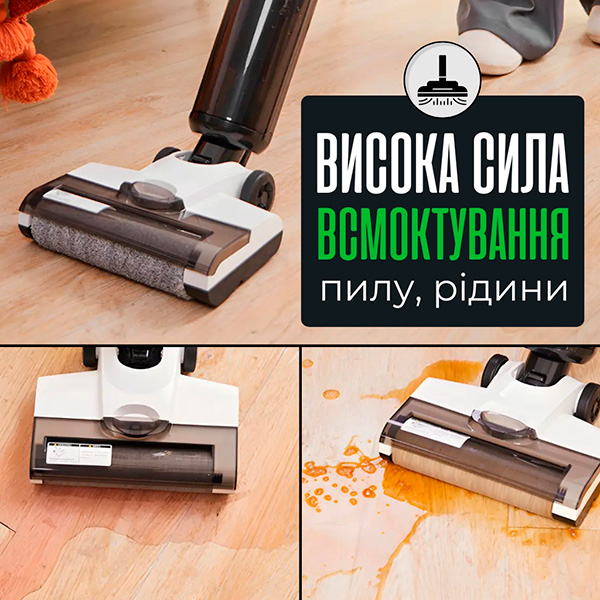 Однією з головних переваг моделі є її універсальність: легко підходить для плитки, ламінату, лінолеуму, килимового покриття та м’яких поверхонь. Збалансована потужність дозволяє проводити глибоке прибирання, не перевантажуючи руку й не створюючи зайвого шуму.